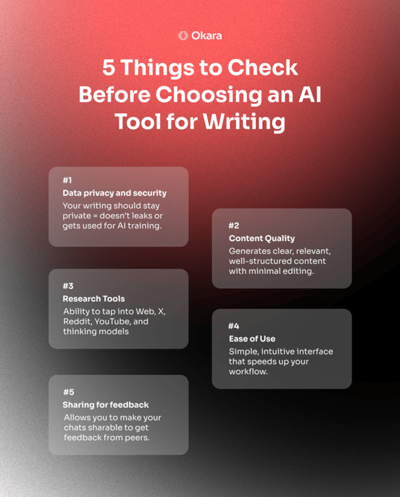 - For sensitive or highly original work: Okara offers unmatched privacy and personalized intelligence, setting it apart.