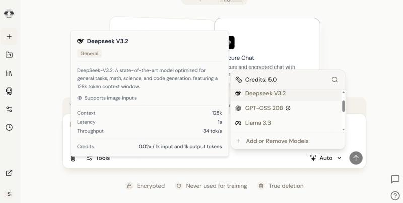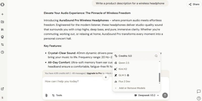 After selecting a model, type your question or prompt into the input area. It works like any other AI chat interface; give instructions, wait for responses, and start a conversation.