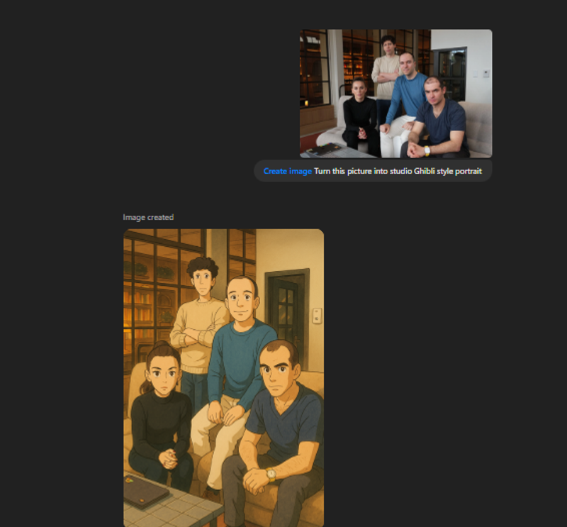 - Ask ChatGPT 4o for multiple prompt variations to try different Studio Ghibli vibes (e.g., dark and mysterious like Princess Mononoke or cozy and warm like Kiki’s Delivery Service).