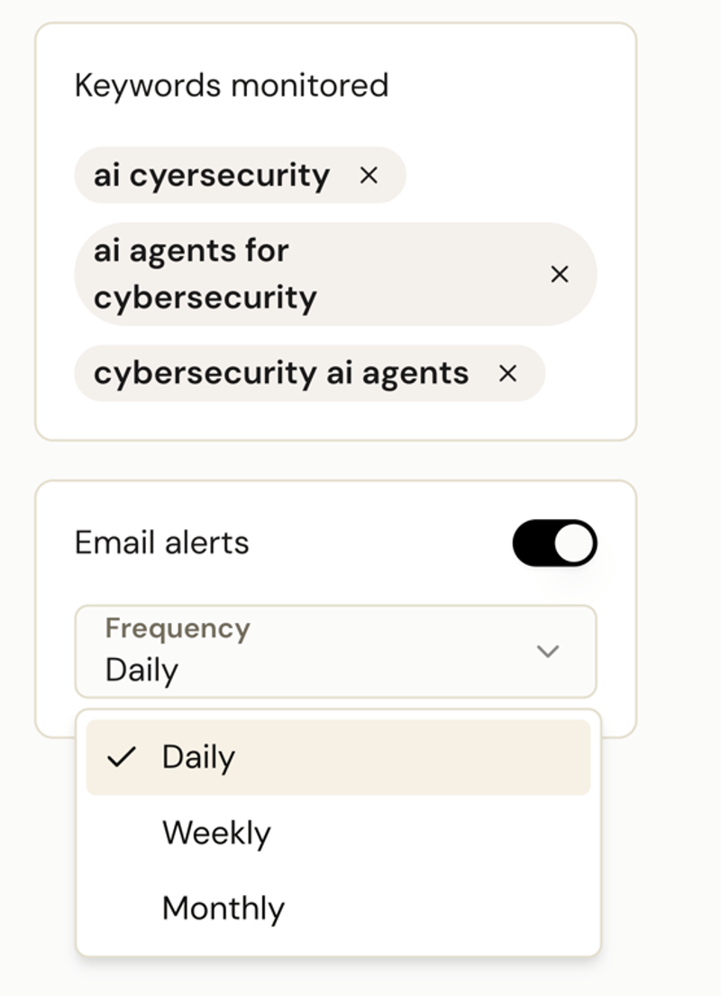 Using the Okara Reddit Agent, you can track keywords and let the agent find you more relevant subreddits and discussions every day. You can track your brand keywords to see what people are talking about your brand, you can track competitor keywords, or track industry related keywords to discover discussions that are relevant for your product and business niche.